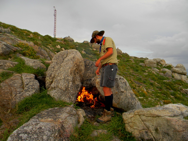 Facile a dirsi, meno a farsi visto che non c’è ombra di legna in giro, nonostante si potessero vedere i resti di alcuni fuochi di altri pellegrini. Lascio Claus per seguire la mia vocazione scout e cercare della legna. Nel frattempo ritrovo Pablo e Marina, che si uniscono a Claus mentre io continuo la mia avanzata in avanscoperta.